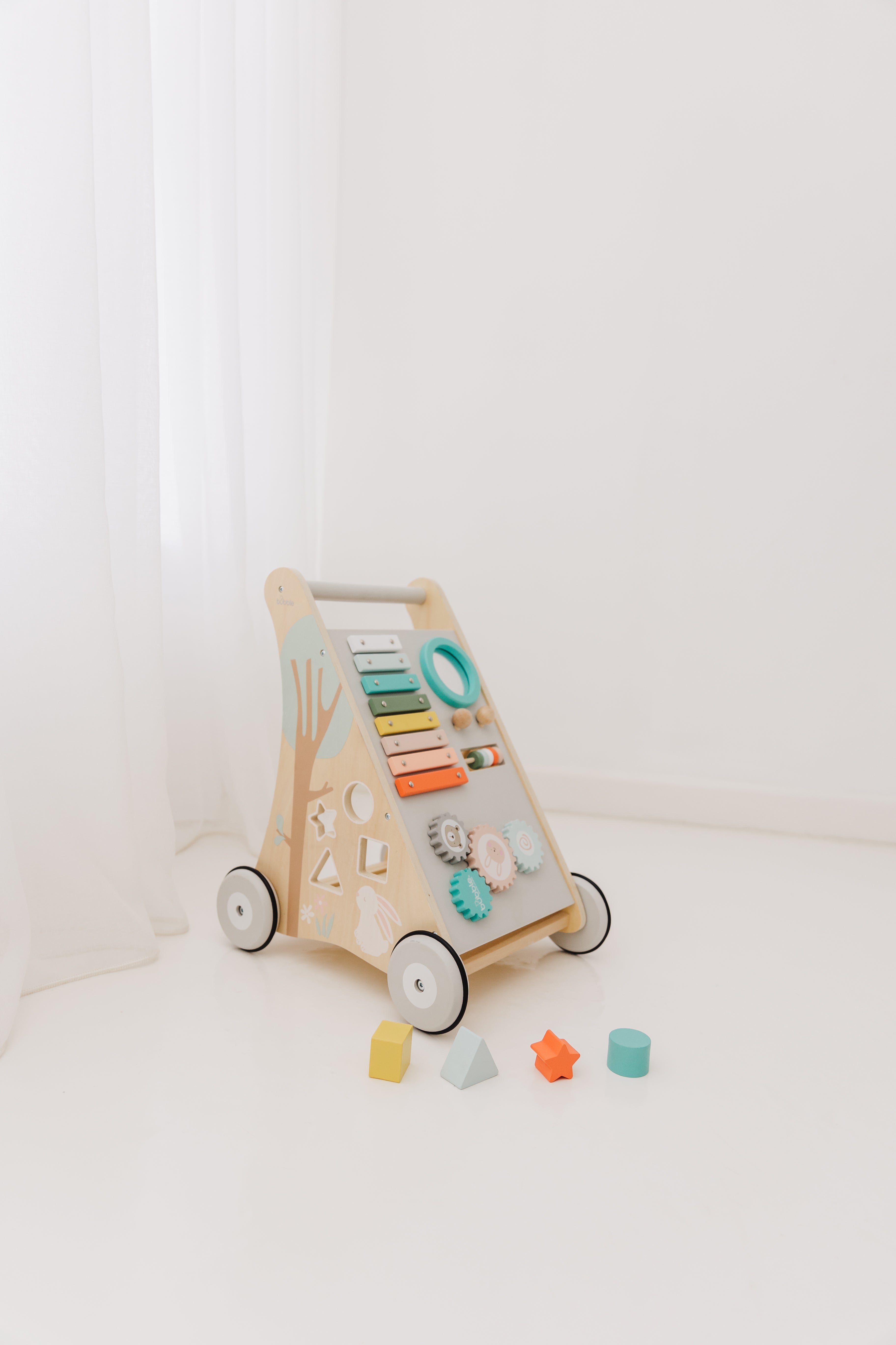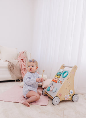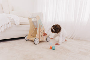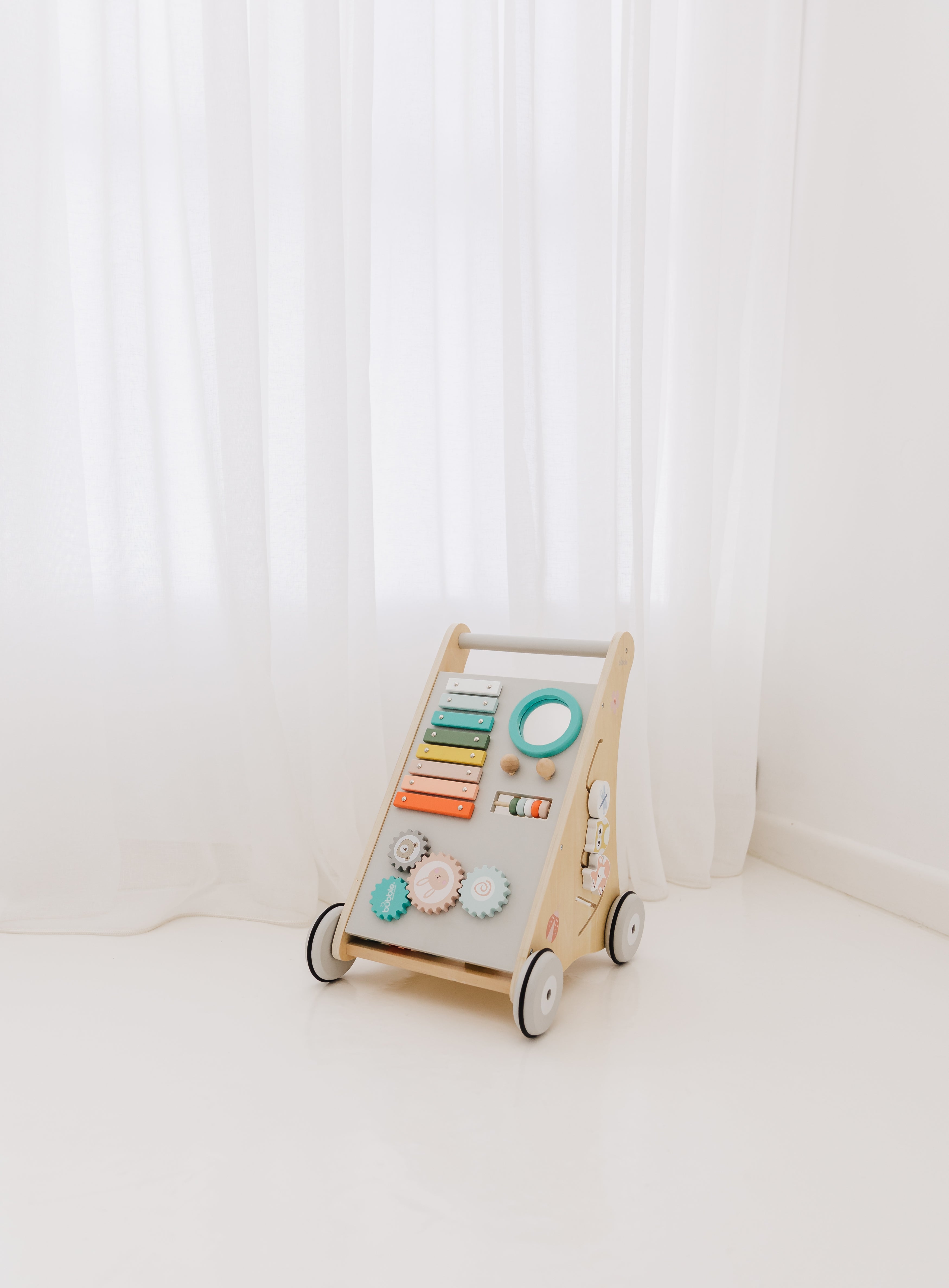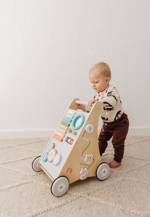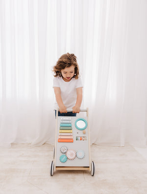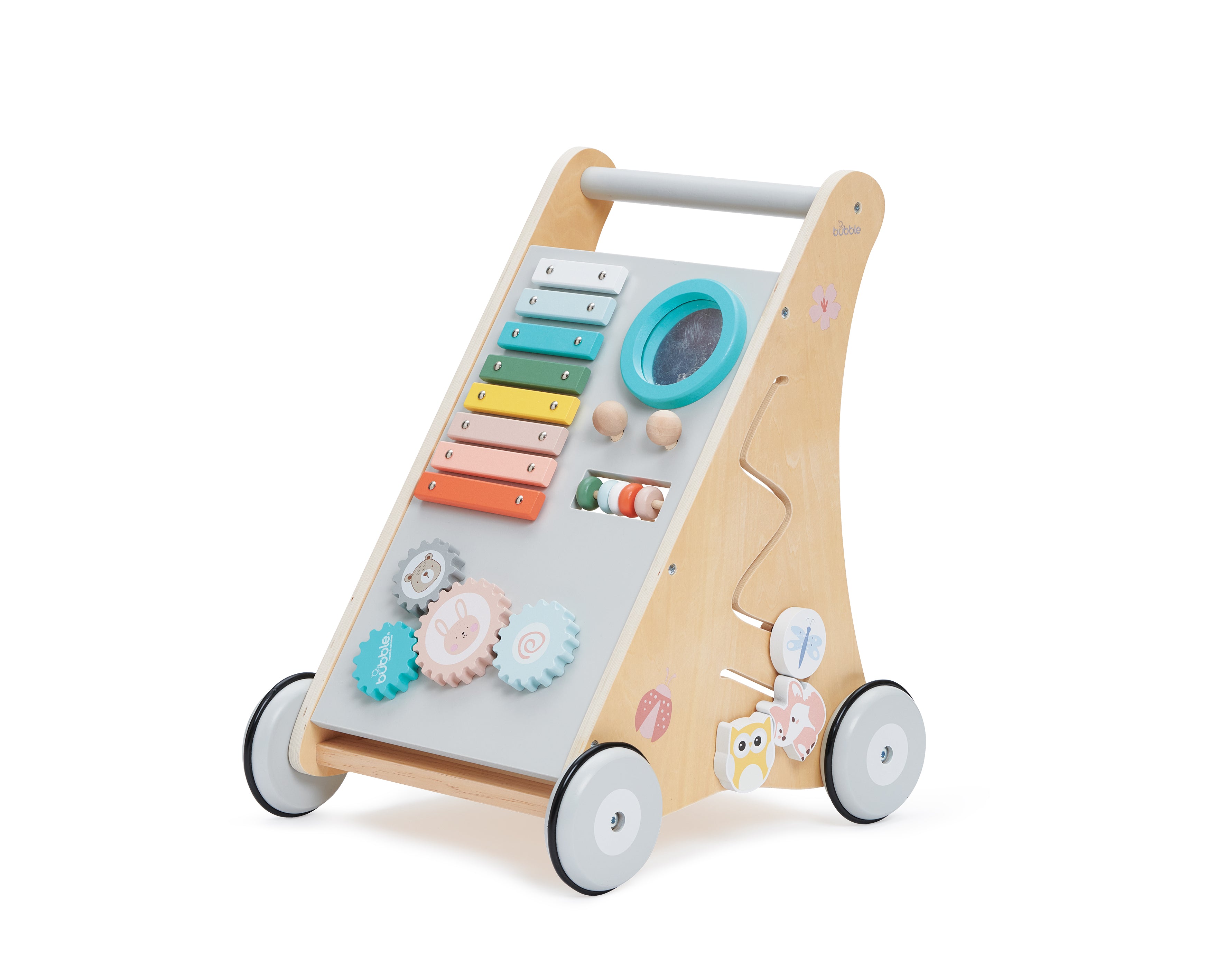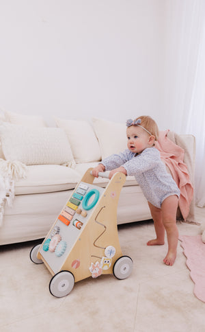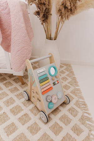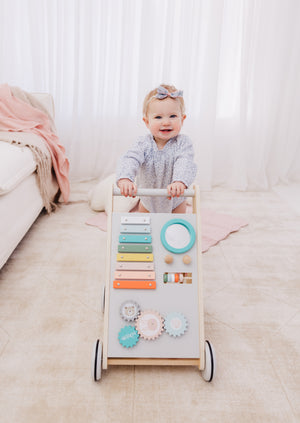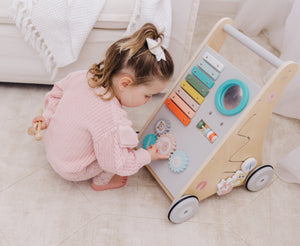 Our Bubble Wooden Activity Walker offers many challenging activities to keep your little one busy on the move!