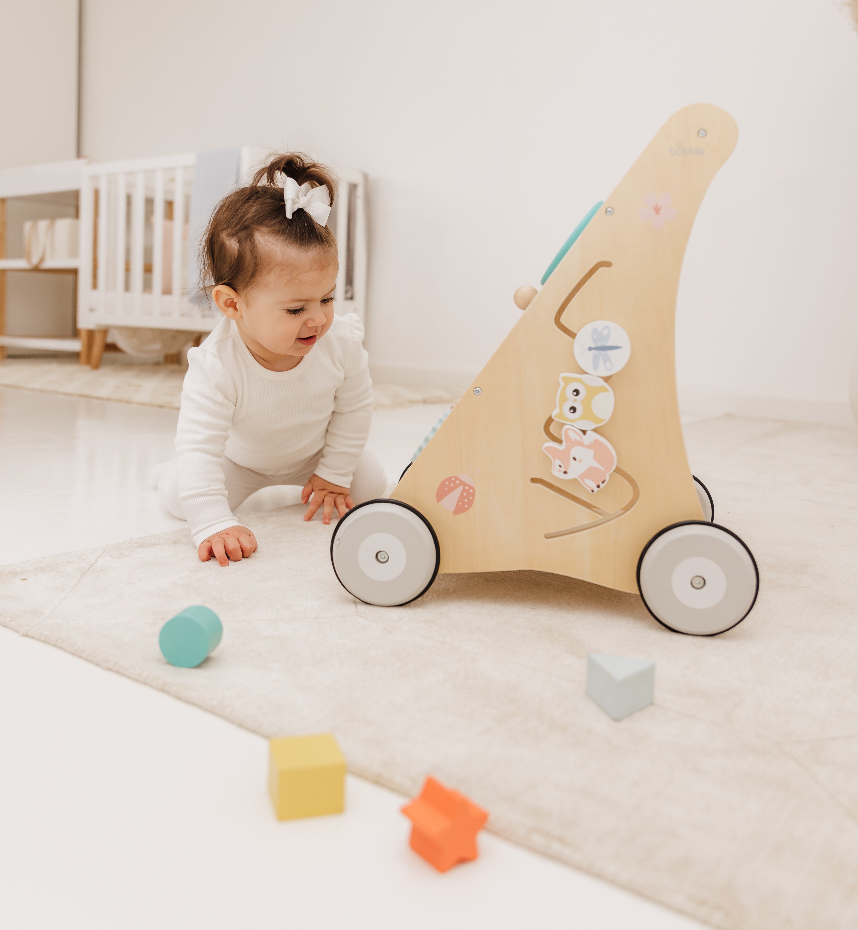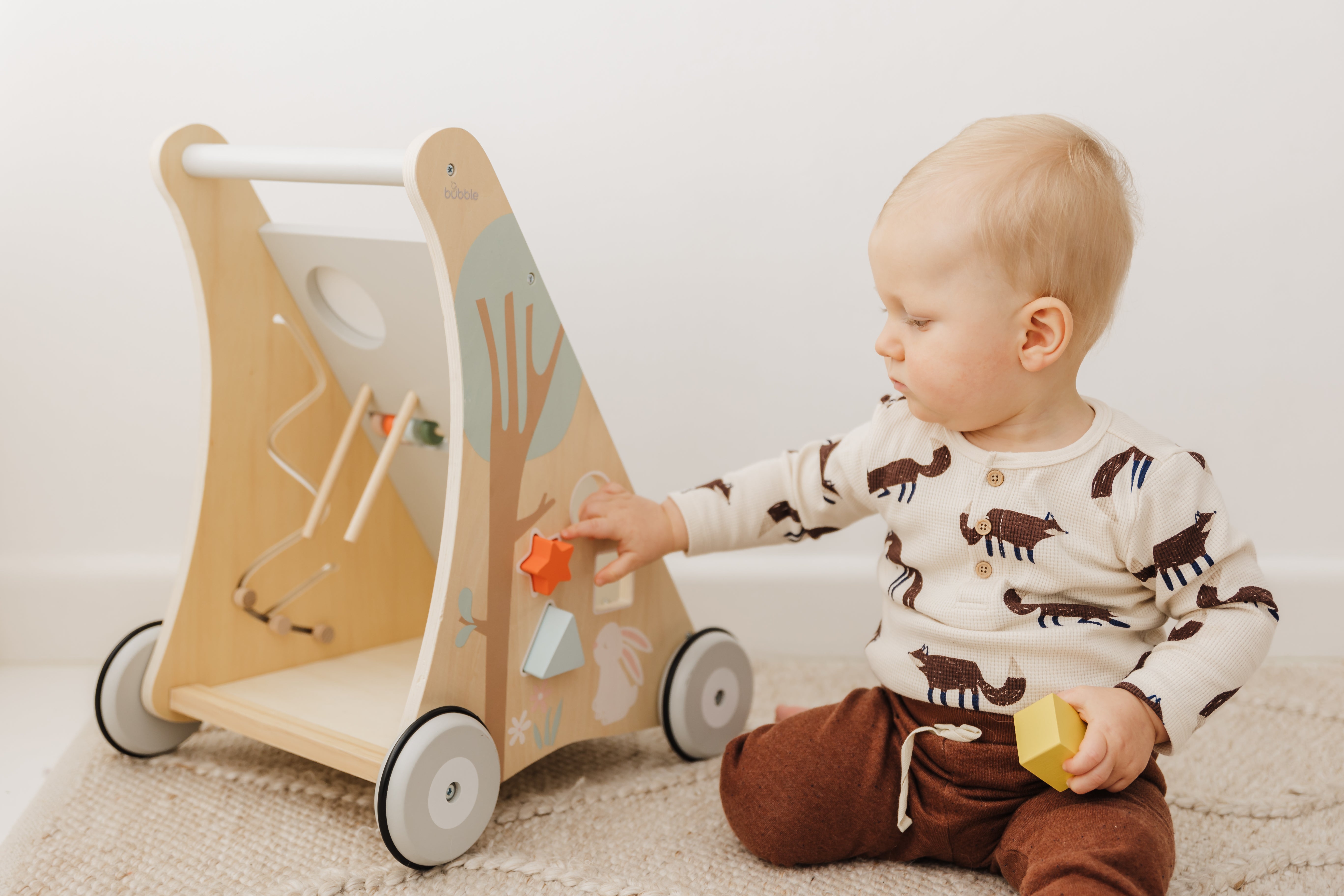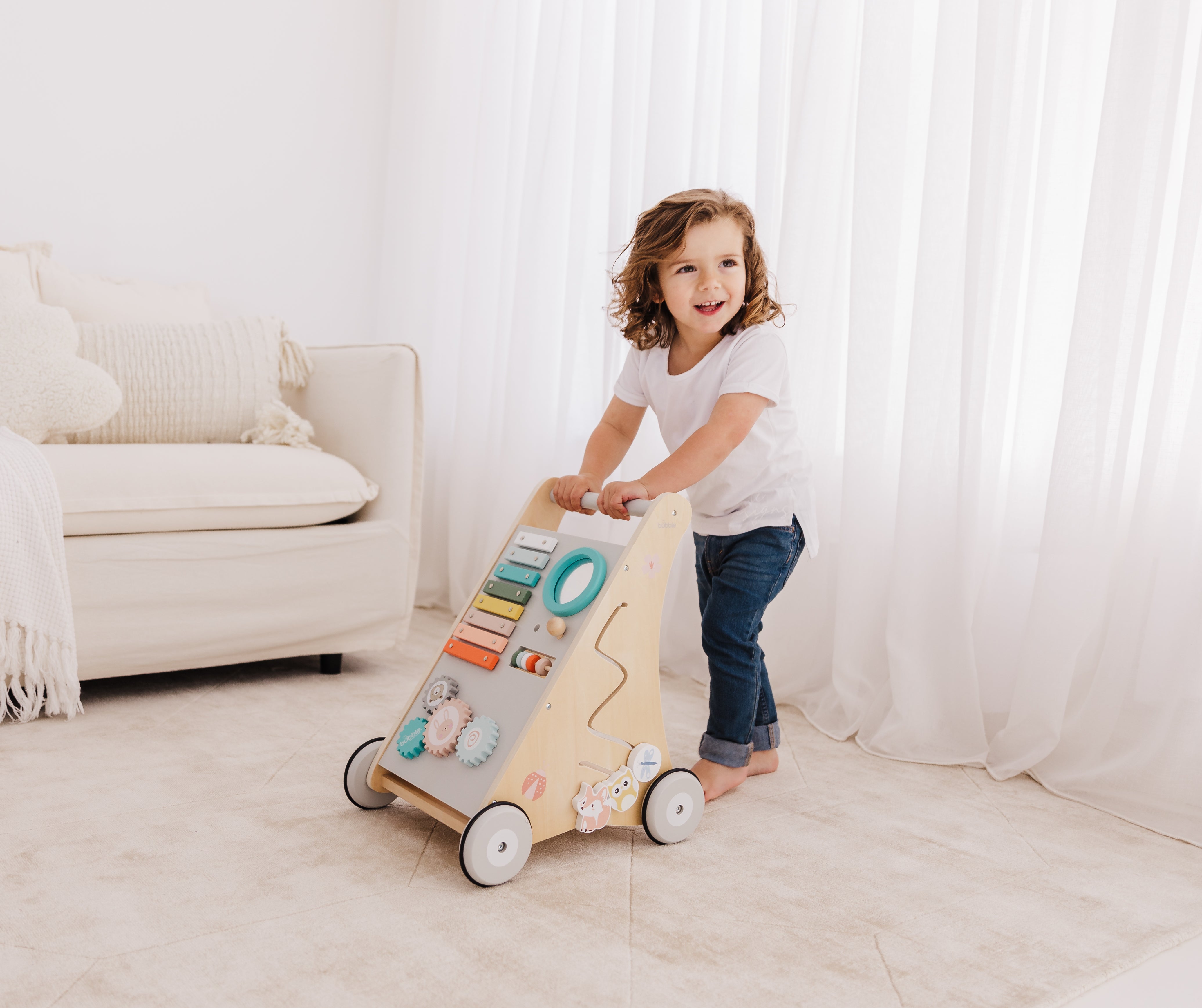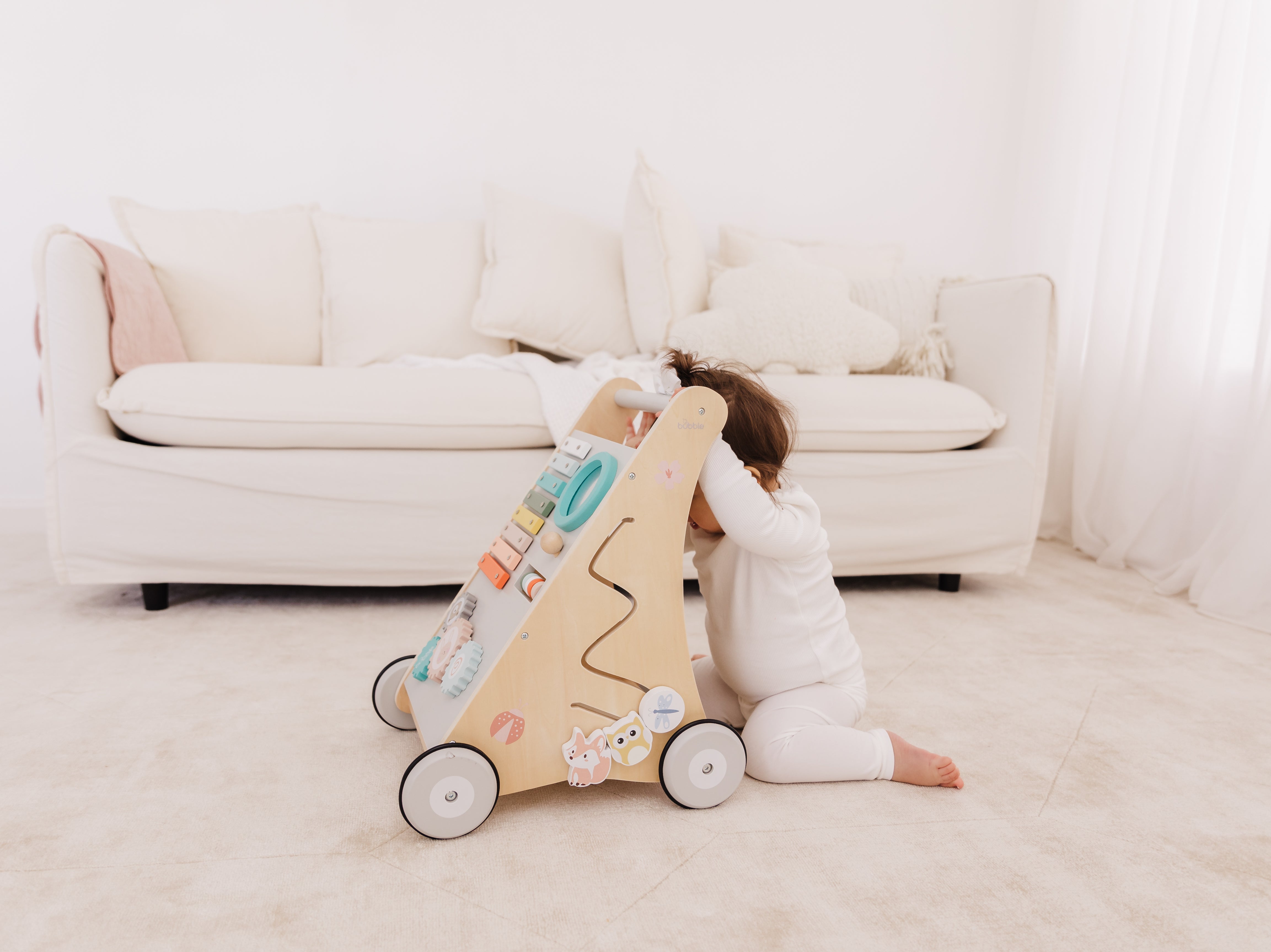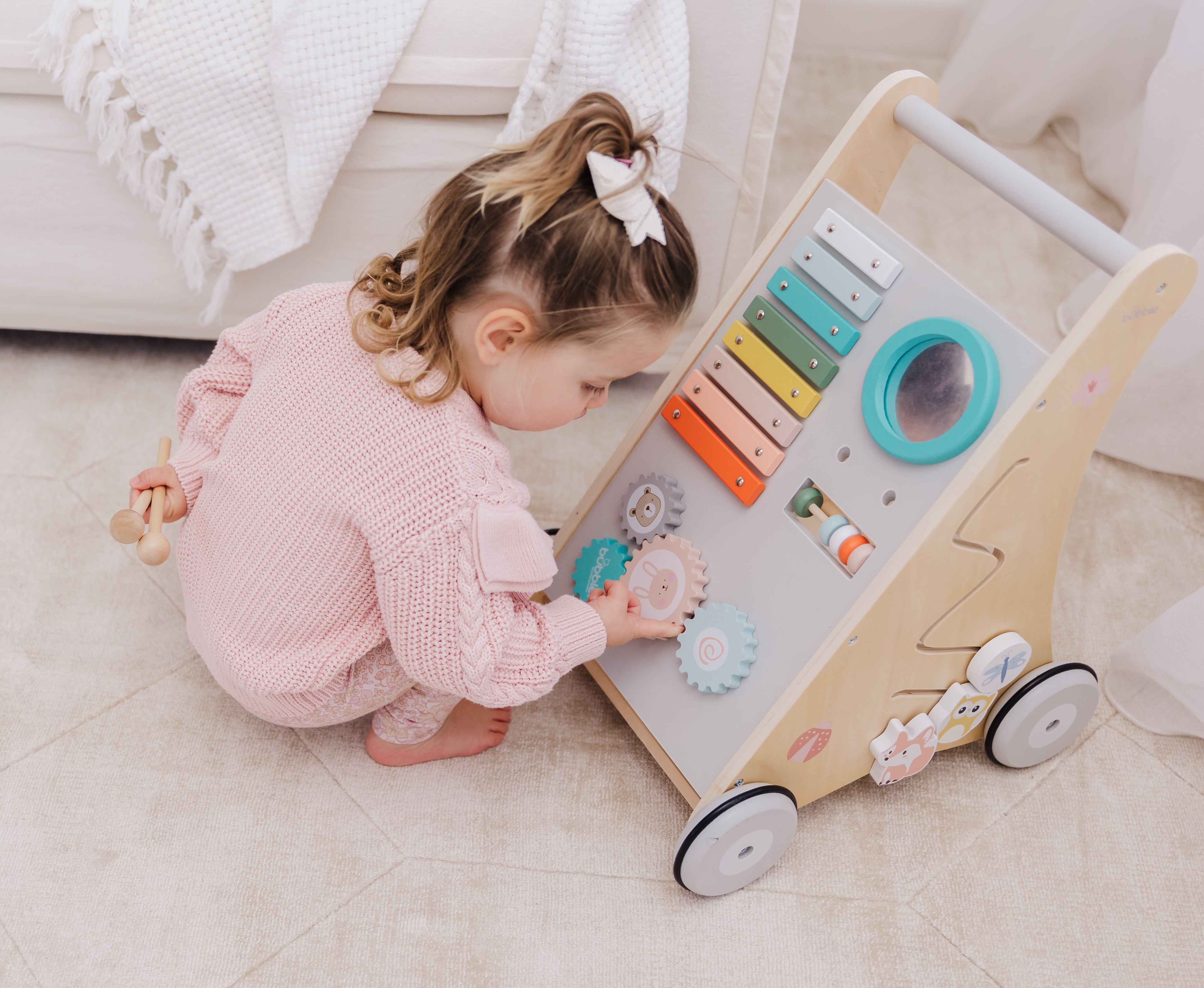 Our Bubble Wooden Activity Walker offers many challenging activities to keep your little one busy on the move!