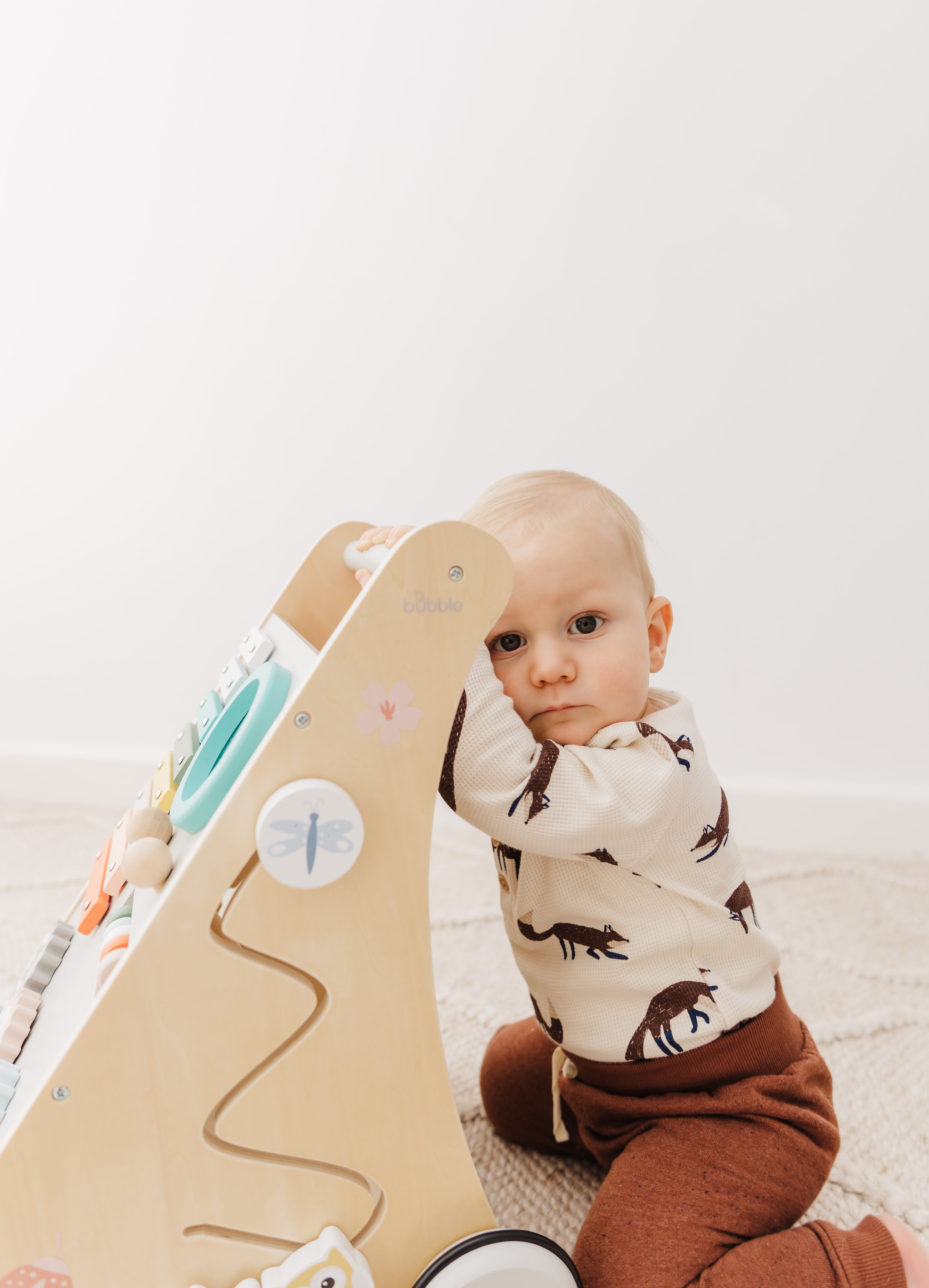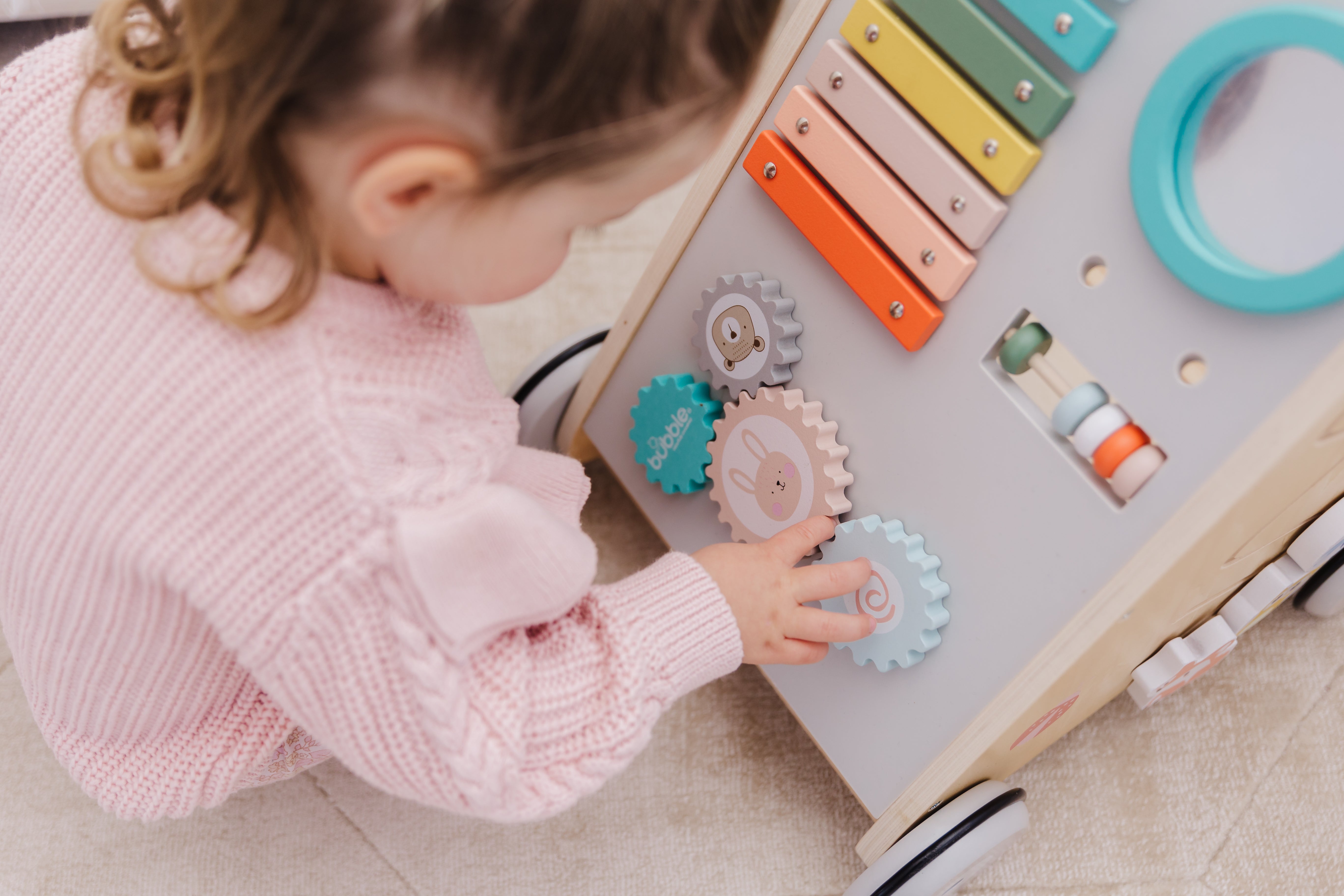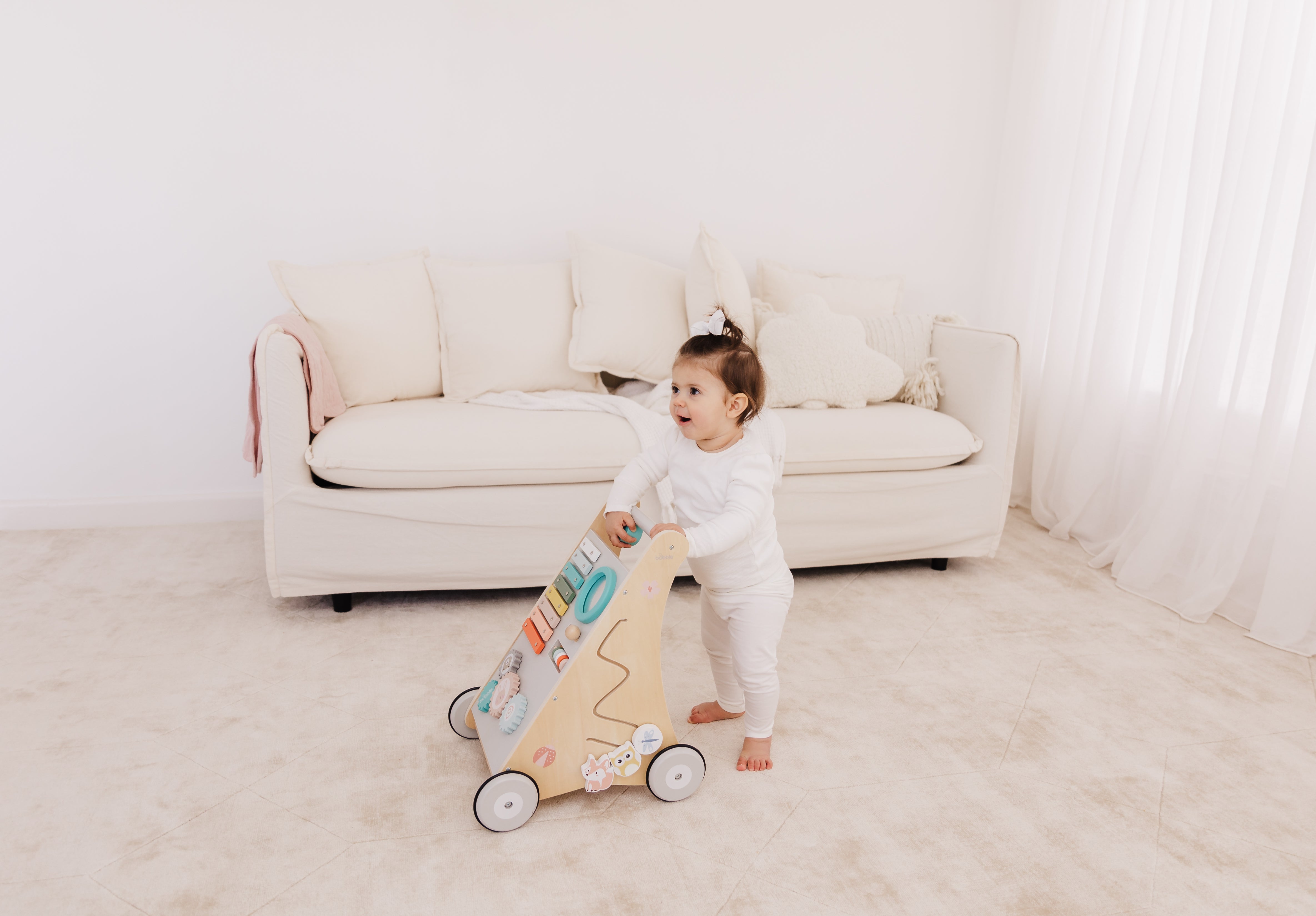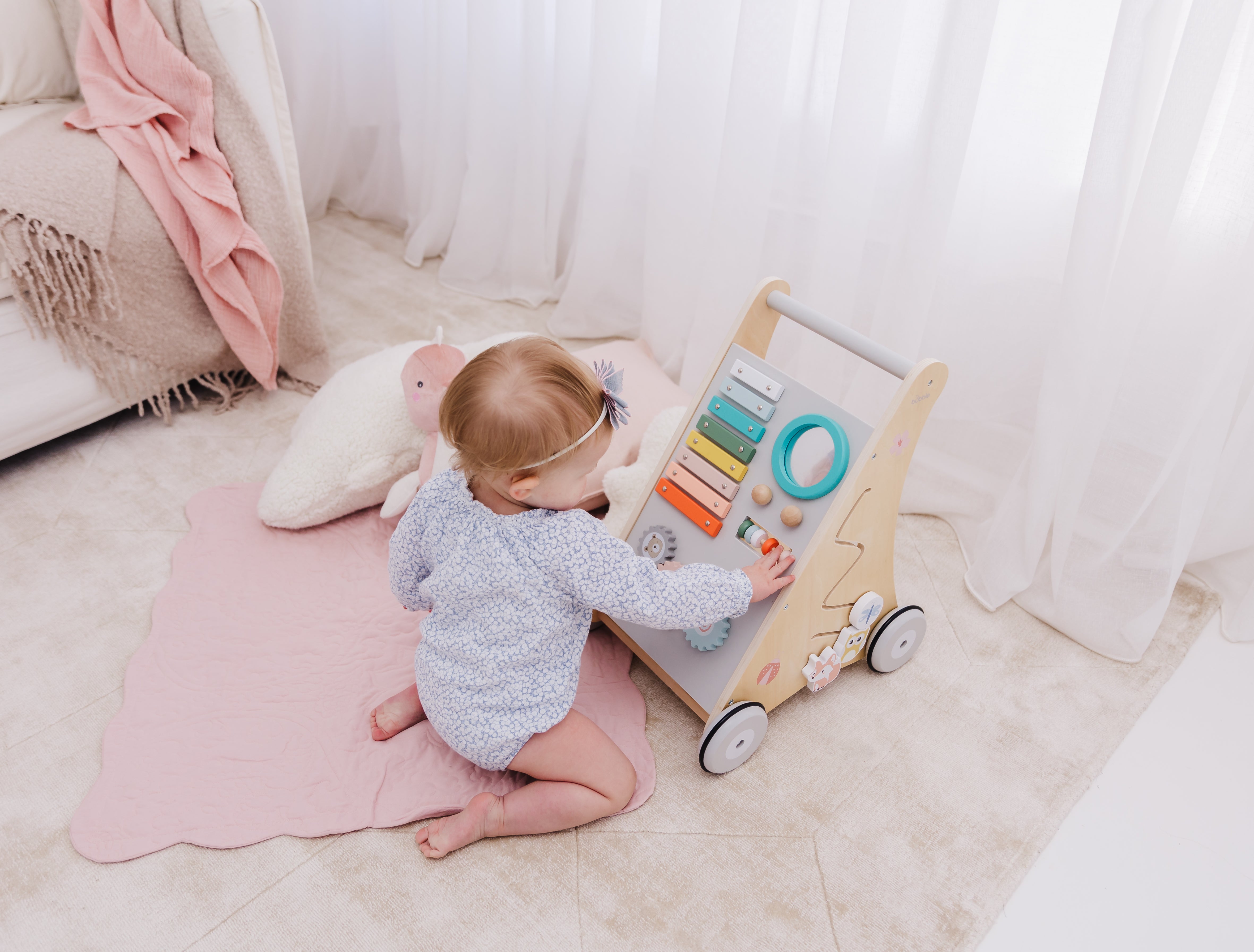 Our Bubble Wooden Activity Walker offers many challenging activities to keep your little one busy on the move!