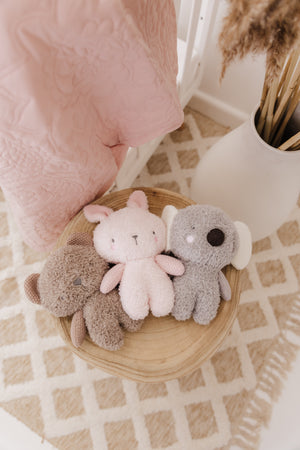G'day mate! Meet Coco the Koala - the latest addition to the Bubble Buddies family! Hailing all the way from Australia, Coco is a plush friend specially designed for your baby from birth. With its irresistibly soft and huggable body, Coco provides a cozy and comforting companion for your little one. This lovable Koala brings a touch of Australian charm to playtime, with its cute fuzzy ears and gentle expression. Perfect for a cosy nap or imaginative adventures, Coco is ready to bring endless cuddles and smiles to your baby's early years.