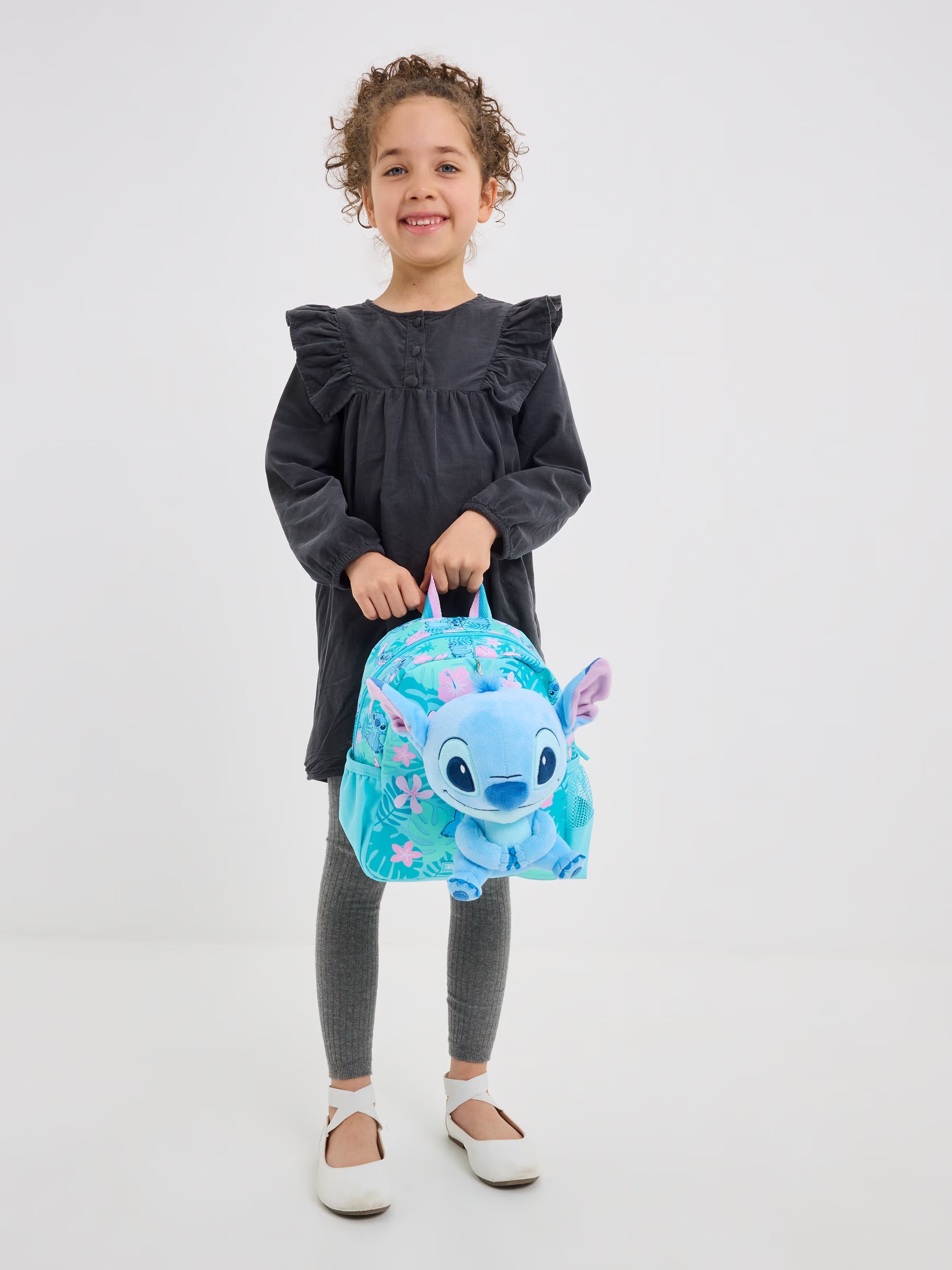Take the mischievous Stitch on adventures with our Teeny Tiny Backpack With Detachable Plush Toy! This backpack features a super soft, pineapple-scented Stitch plush toy that can be detached whenever they want to play. Simply undo the lobster clasp and velcro lining, and reattach when needed to continue carrying Stitch around! Plus, it comes with one main zipped compartment and dual drink bottle sleeves for all essentials.